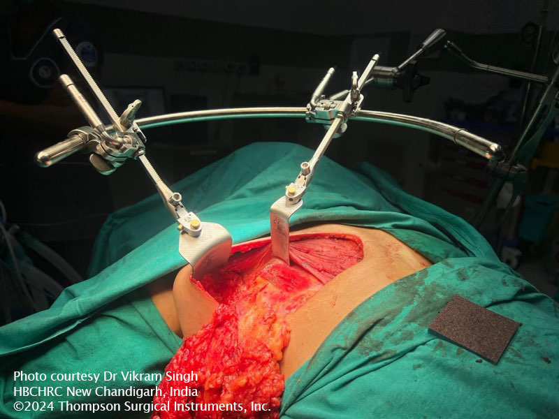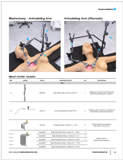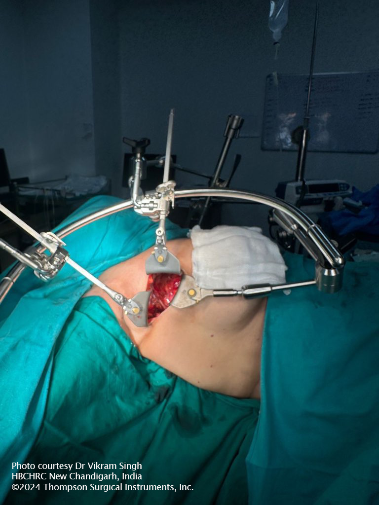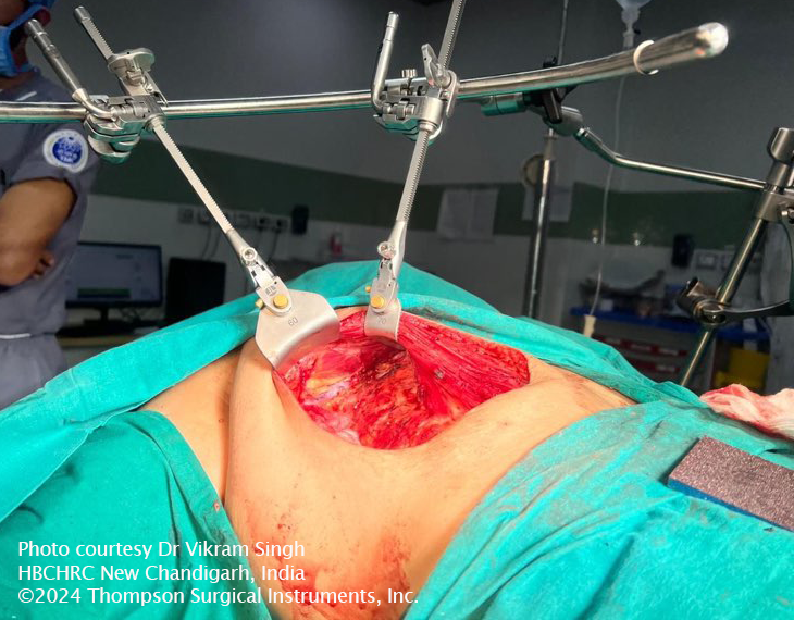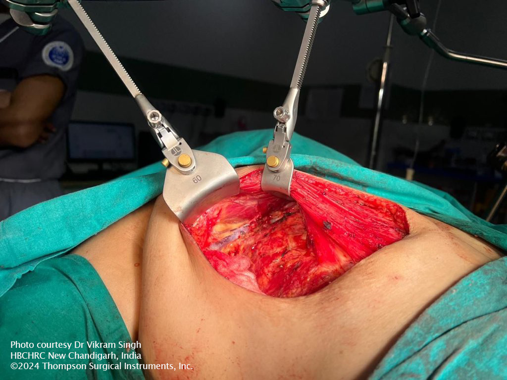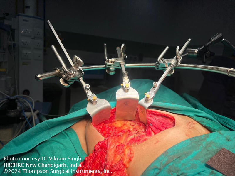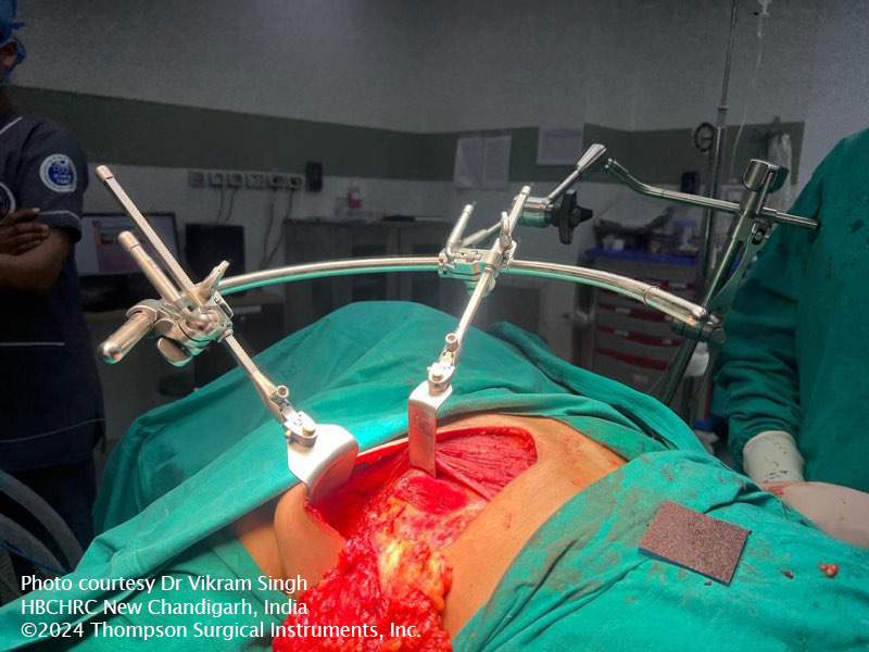 The Thompson Breast Retractor System allows me to perform axillary dissection and deep sentinel node retrieval with good exposure when I am operating alone with only a surgical tech.