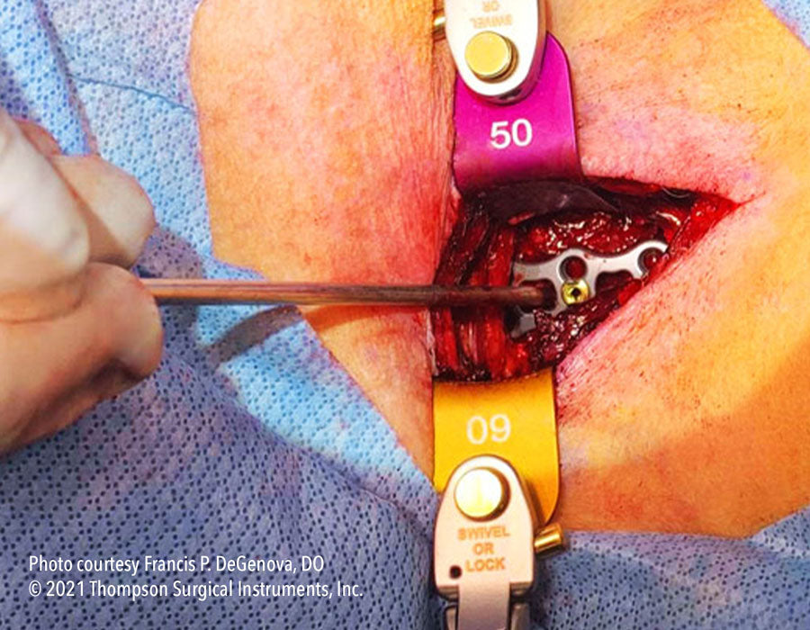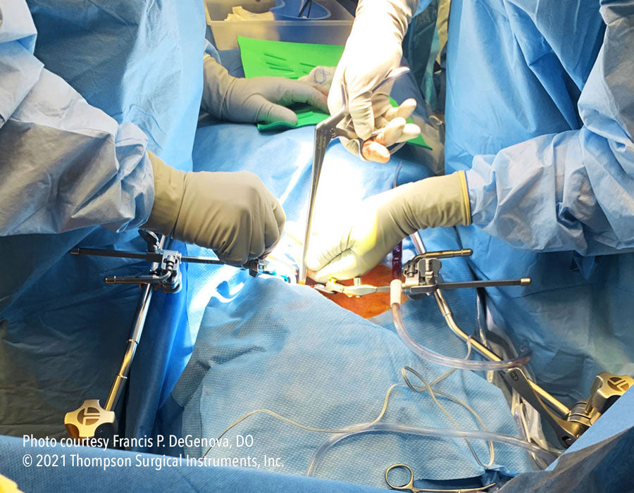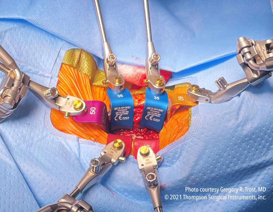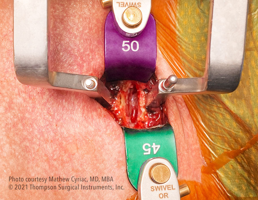 The Thompson Cervical Retractor System frees up my assistant’s hands for other tasks to help the surgery run more smoothly. Solid positioning of the retractor blades decreases risk of injury to local tissues. It’s a great system.