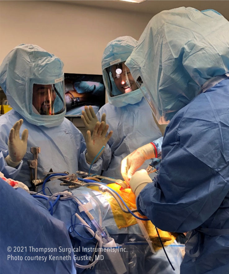 The Thompson Retractor is extremely helpful and allows for easy and safe exposure with one assistant.