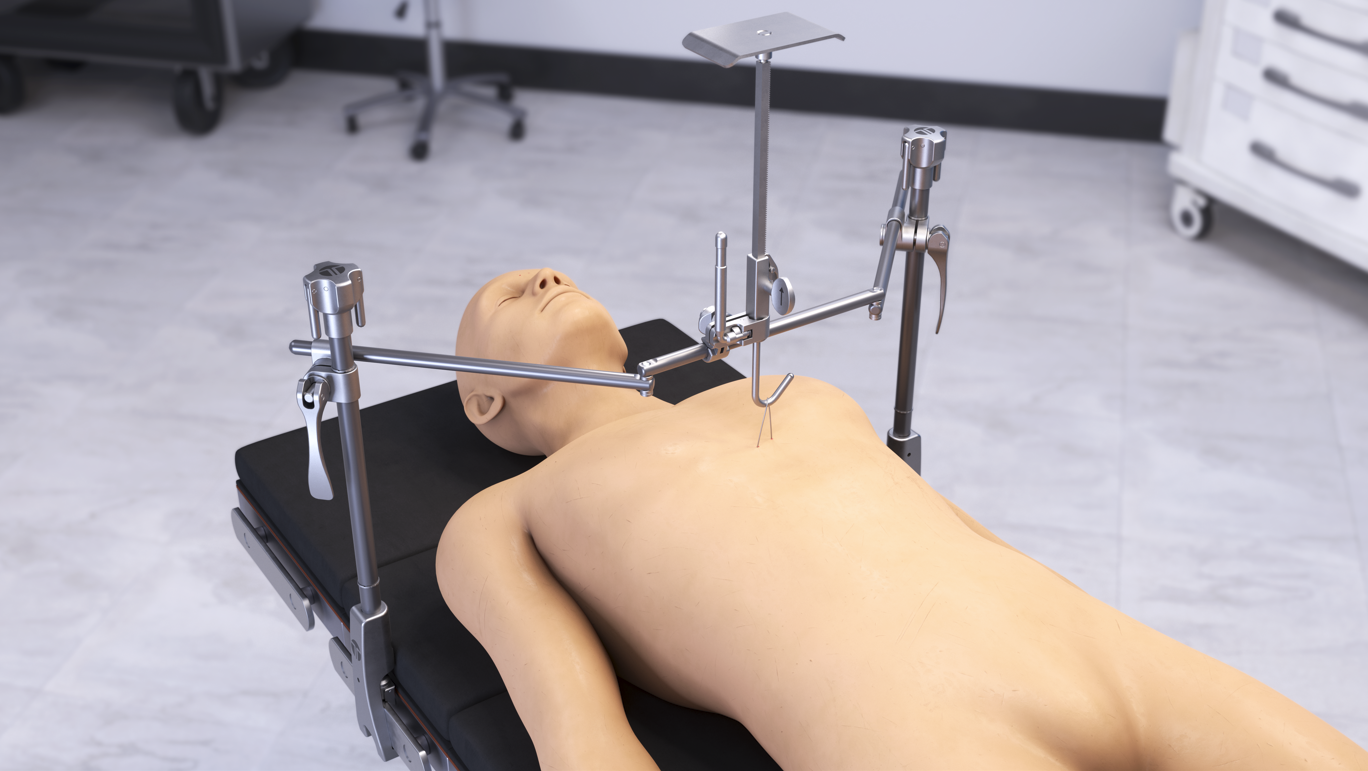 The Pectus Elevator Retractor Set allows for quick, easy set-up during chest wall deformity surgery. The 2-in-1 set is designed to assist in surgical correction of Pectus Excavatum. Equipped with both a lifter and compression plate, you can achieve elevation or compressionwith a simple flip of the Pectus Elevator. The entire frame mounts to the table allowing for set-up and adjustments in the sterile field.